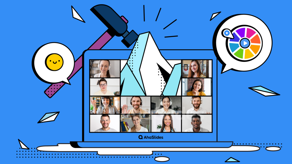 AhaSlides lets you interact live with your remote team. Present polls, word clouds and fun quizzes that your team can interact with in real time using their phones